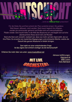 Inspiriert von «Nachts im Museum» präsentiert Musical Fever mit «Nachtschicht» ein fesselndes Musical voller Magie, Verrat, Heldentum und Freundschaft – ein Abenteuer, das Herzen höherschlagen lässt.