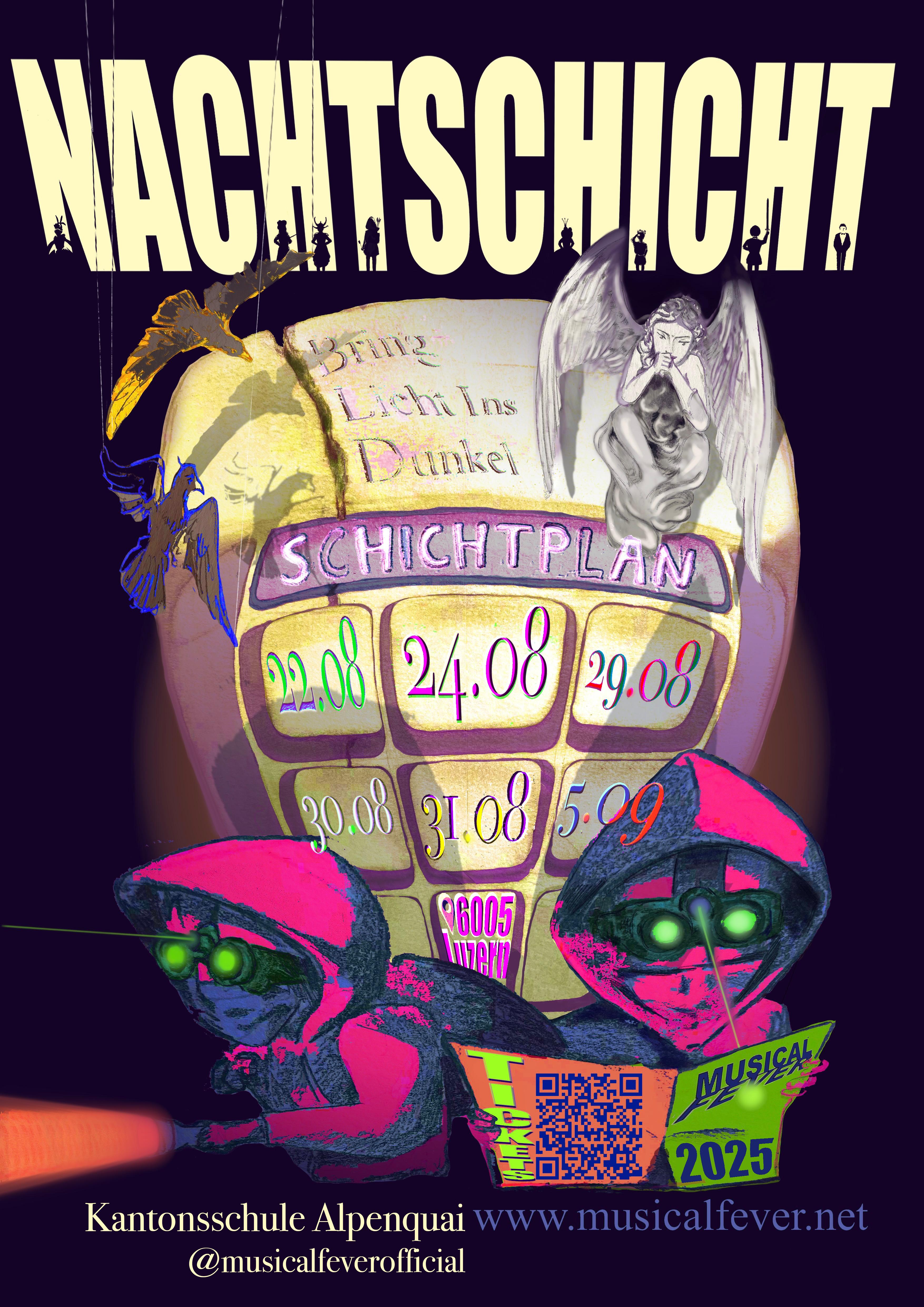 Das Musical «Nachtschicht» wurde an folgenden Daten an der Aula der Kantonsschule Alpenquai aufgeführt: